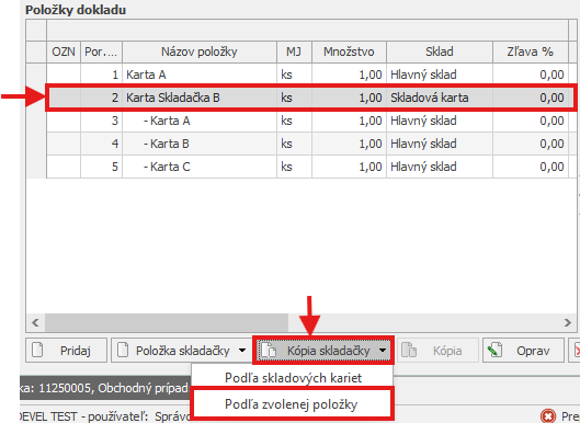Pri pridaní skladovej karty typu skladačka do dokladu bola zapracovaná možnosť vytvorenia kópie existujúcej skladačky Podľa zvolenej položky.