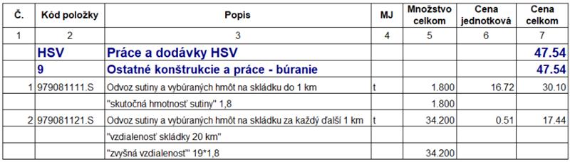 Dôležité upozornenie: V cenách týchto položiek sú už započítané náklady na jazdu naloženého vozidla na skládku, ale aj cesta späť prázdneho vozidla na miesto nakladania. Nemusíte ju teda oceňovať osobitne.